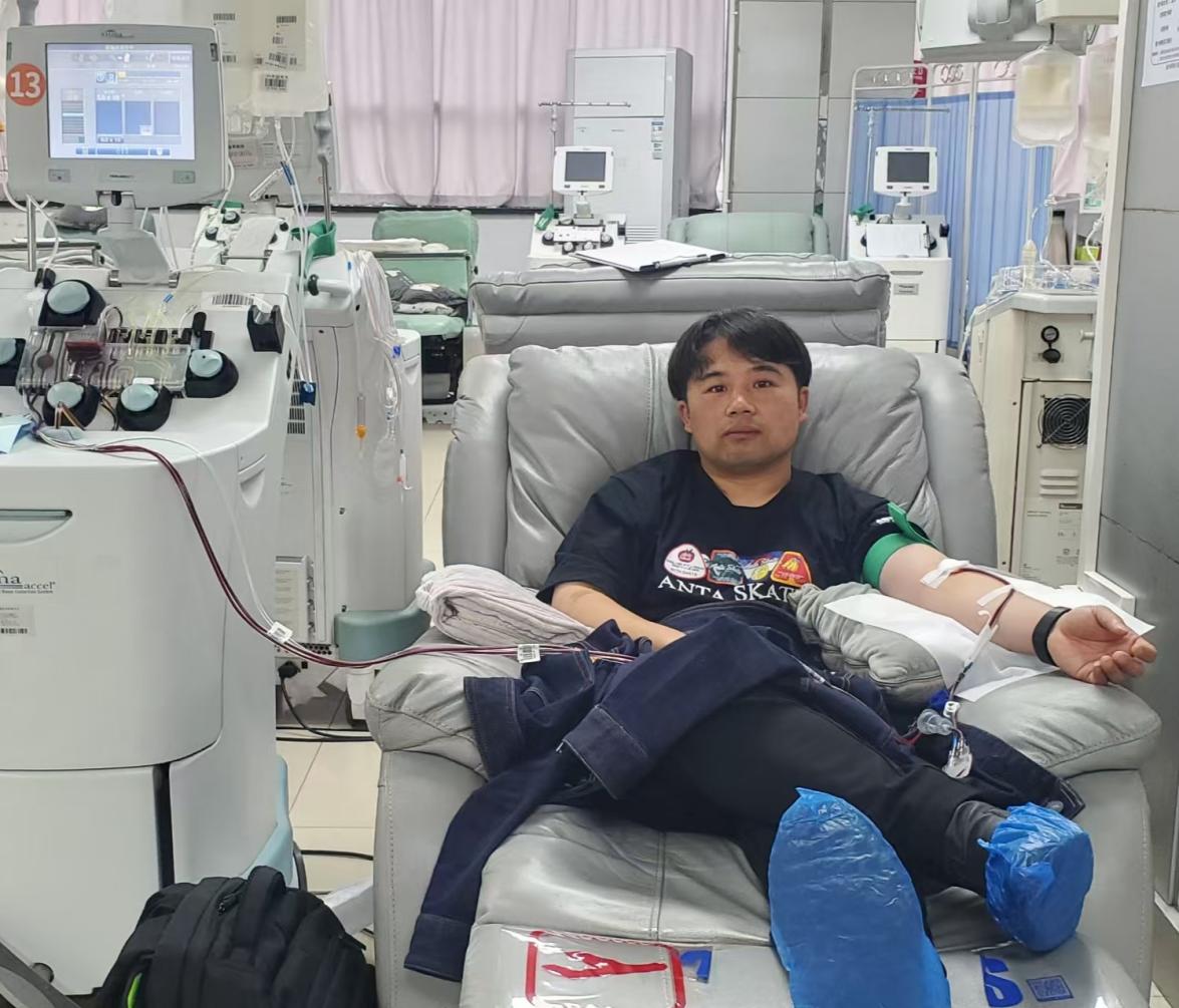 2026年3月30日,有着十年无偿献血经历的固定献血者於鹏,特意从浙江搭乘航班奔赴重庆,来到重庆市血液中心献血服务二科,顺利完成血小板捐献,用滚烫热血为生命接力,续写长达十年的公益坚守。