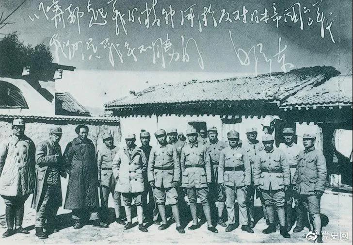 1931年12月14日,国民党第二十六路军在赵博生、董振堂、季振同、黄中岳率领下,于江西宁都起义,加入工农红军,编为红军第五军团。图为1937年毛泽东、王稼祥、萧劲光与宁都起义的参加者在延安合影。